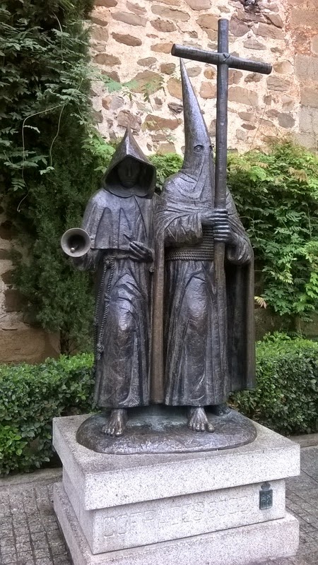 Photos: Building a new railway bridge south of Canaveral; The main square in Caceres; An intriguing statue in Caceres - I couldn't find any mention of the KKK on the inscription!